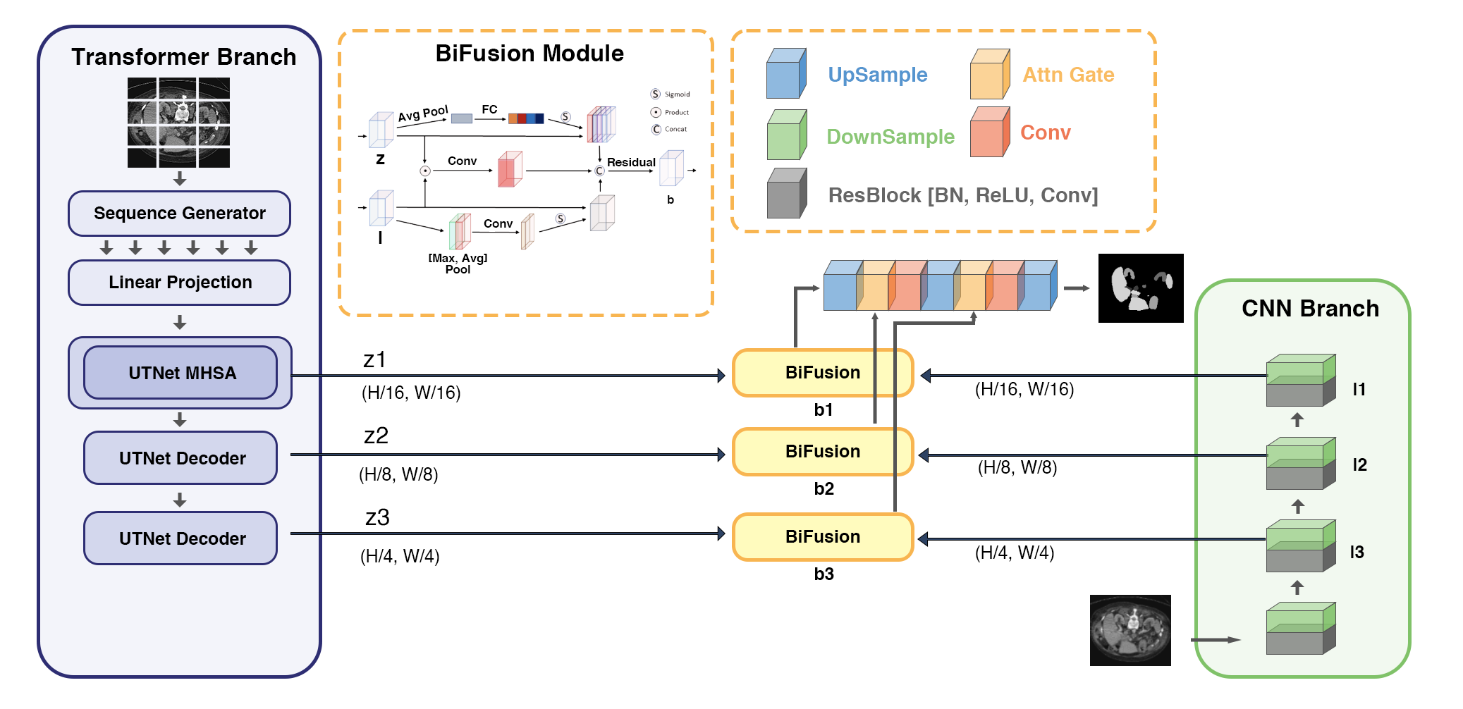 With this branch-in-parallel approach, firstly, global information can be captured and sensitivity could be preserved on low-level context without building deep nets; secondly, the fused representation would be powerful and compact with the BiFusion module by utilizing the different features of CNN and Transformer simultaneously.